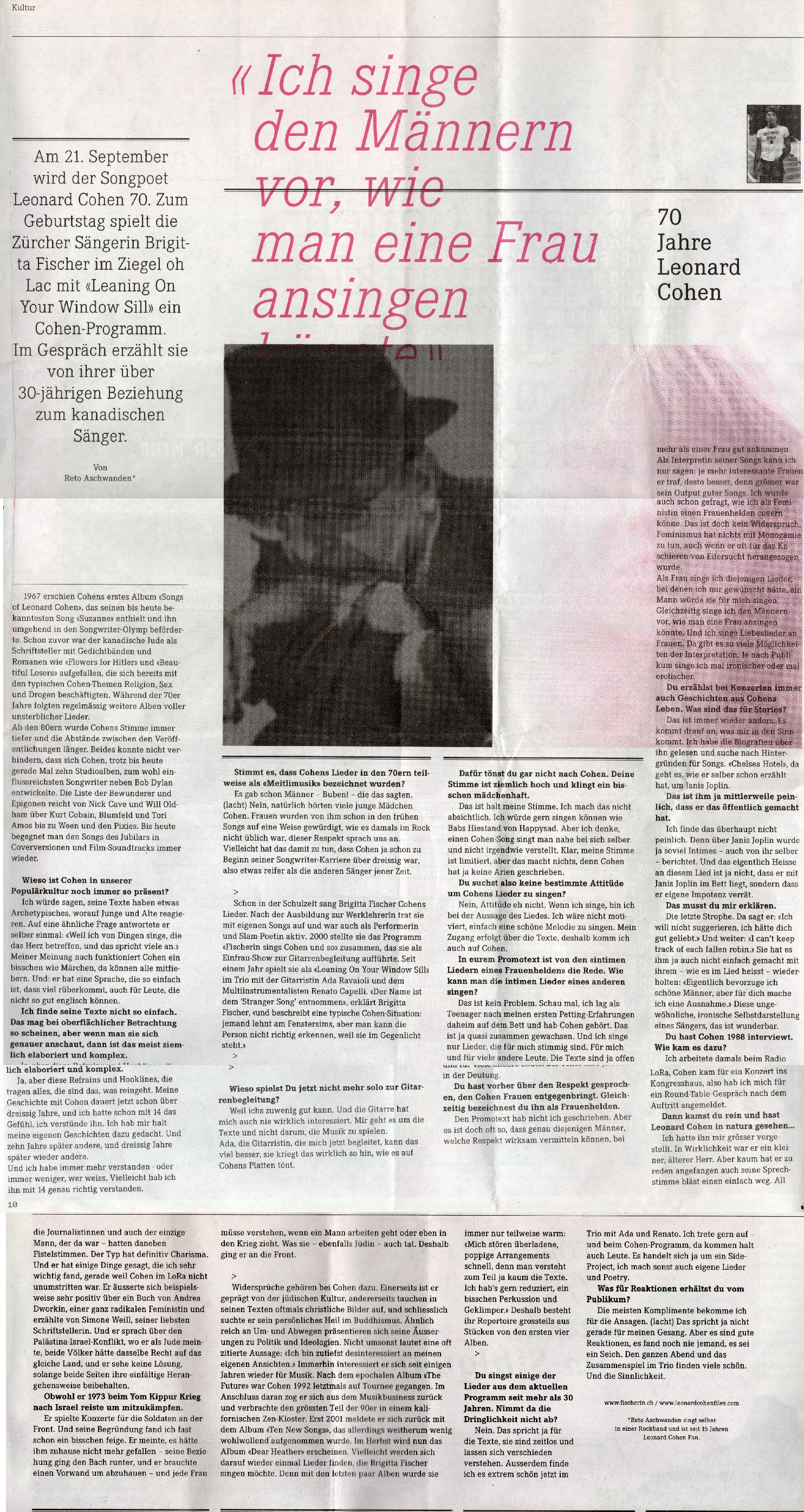 Leaning On Your Window Sill, Konzertreihe zum 70sten Geburtstag von Leonard Cohen