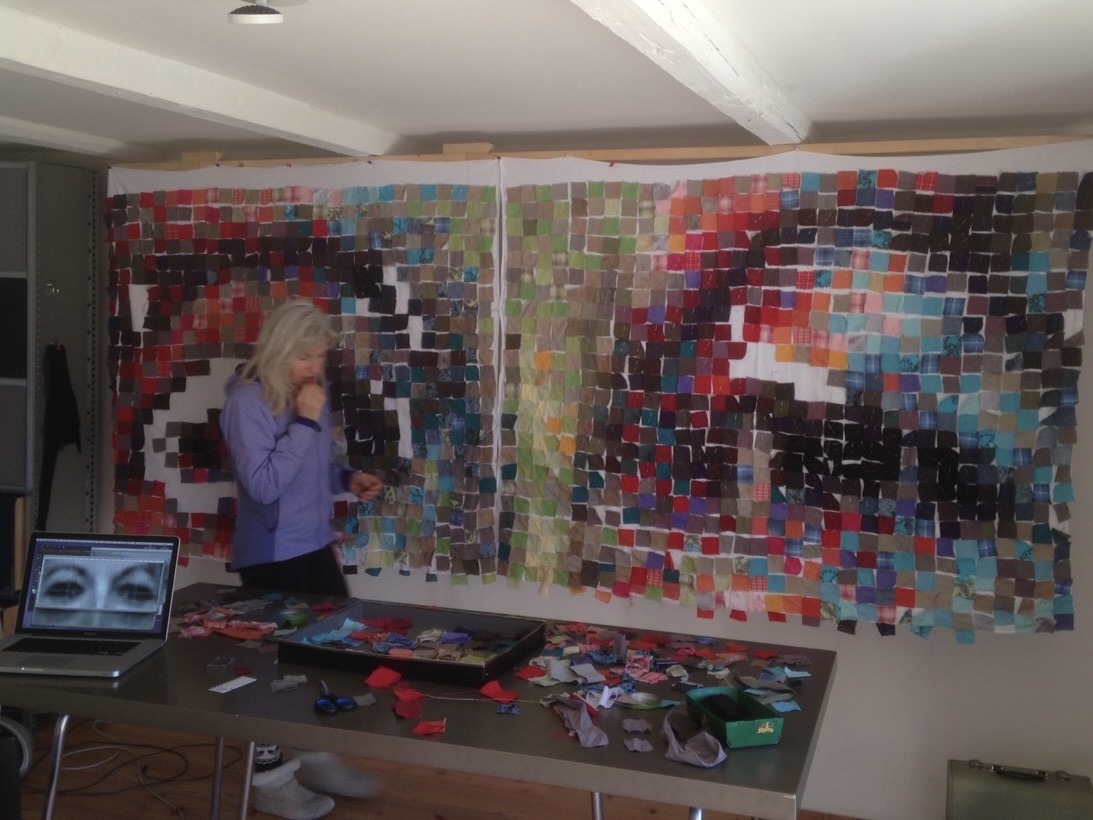 Sylvies Blick aus 1488 Pixeln bringt es mit sich, dass ihr Gesicht – von weitem erkennbar – sich mit dem Näherkommen auflöst in die Stoffe, die Sylvie zu tragen wählte.